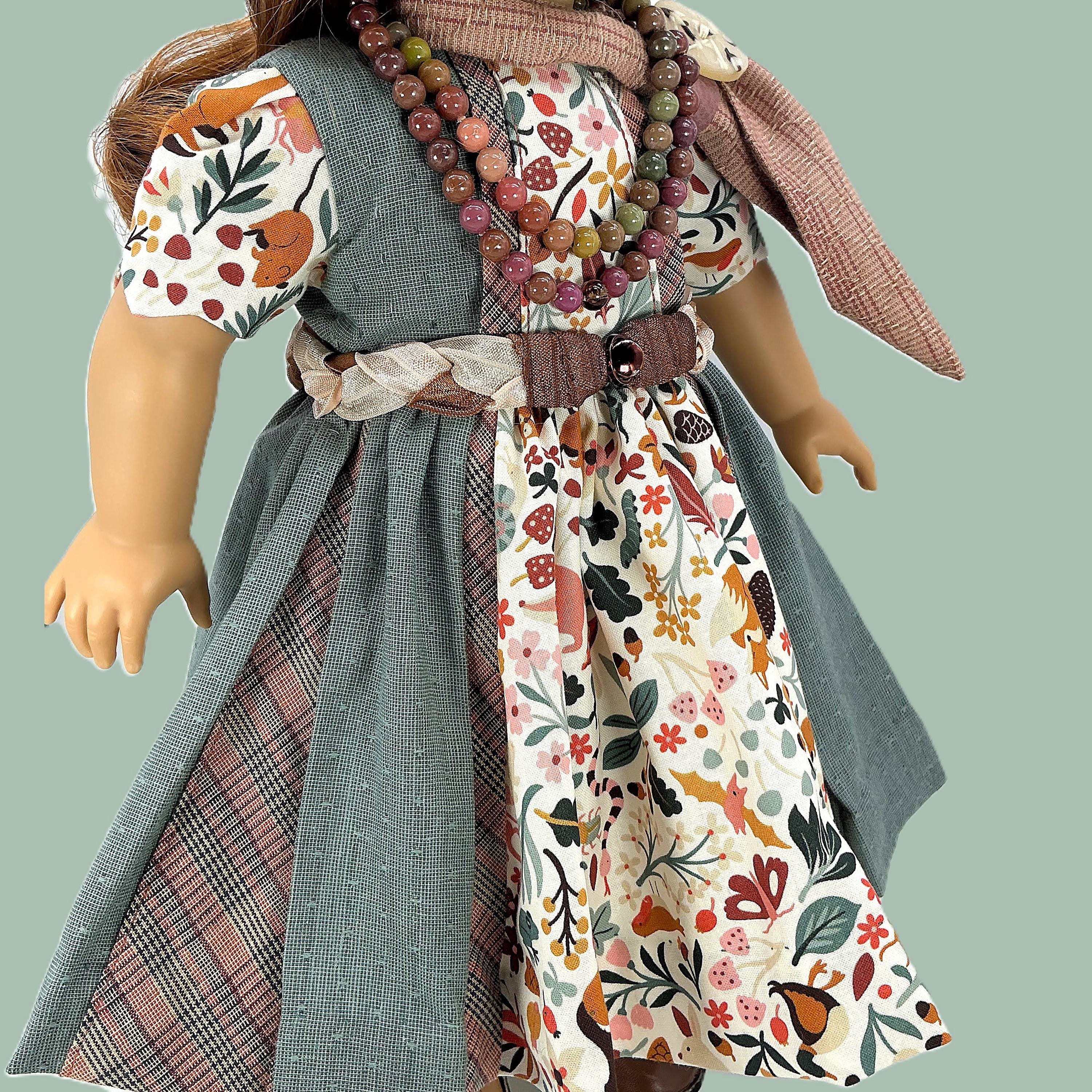 DETAILS: The paneled dress is made with premium cotton fabrics in muted green, plaids, and woodland creatures. All seams are finished.