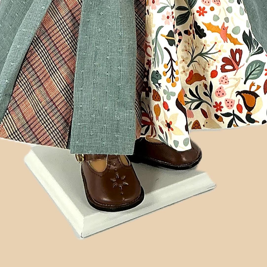 About a Doll 18; Crabapples; Doll Duds; Doll Joy; Forever 18 Inches; Genniewren Designs; Jen Ashly Doll Designs; Keeper Dolly Duds Designs; Liberty Jane Clothing; Love from Lola Doll Clothing; Miche Designs; Love U Bunches, and QT[] Pattern Co. All patterns are sourced through Pixie Faire.