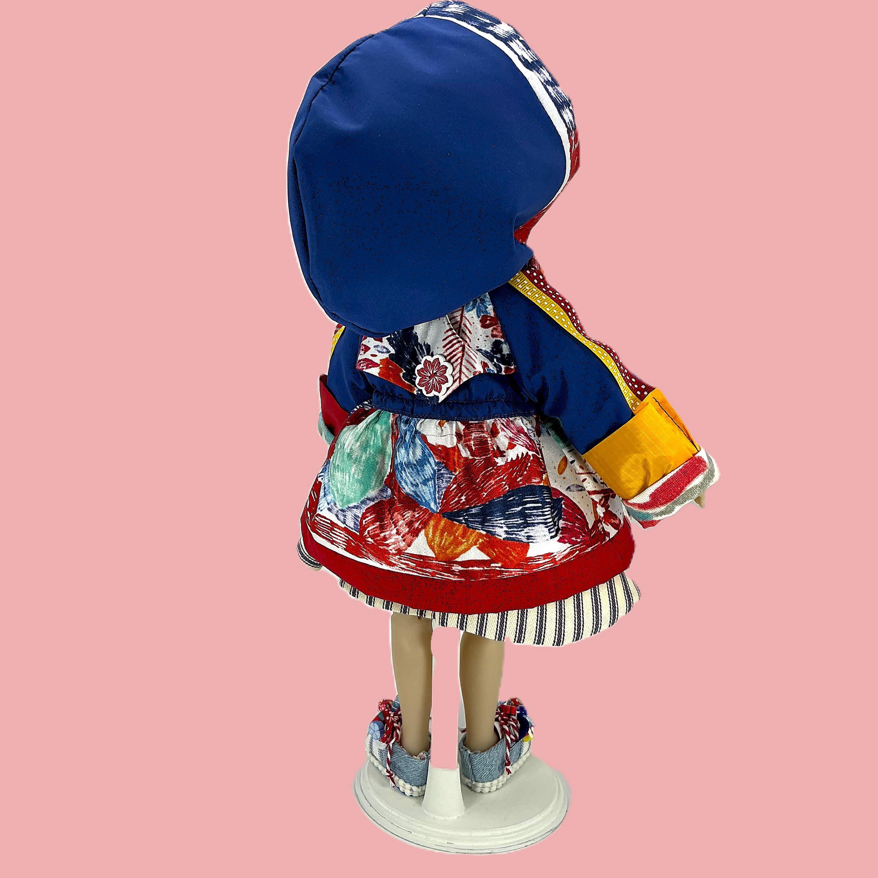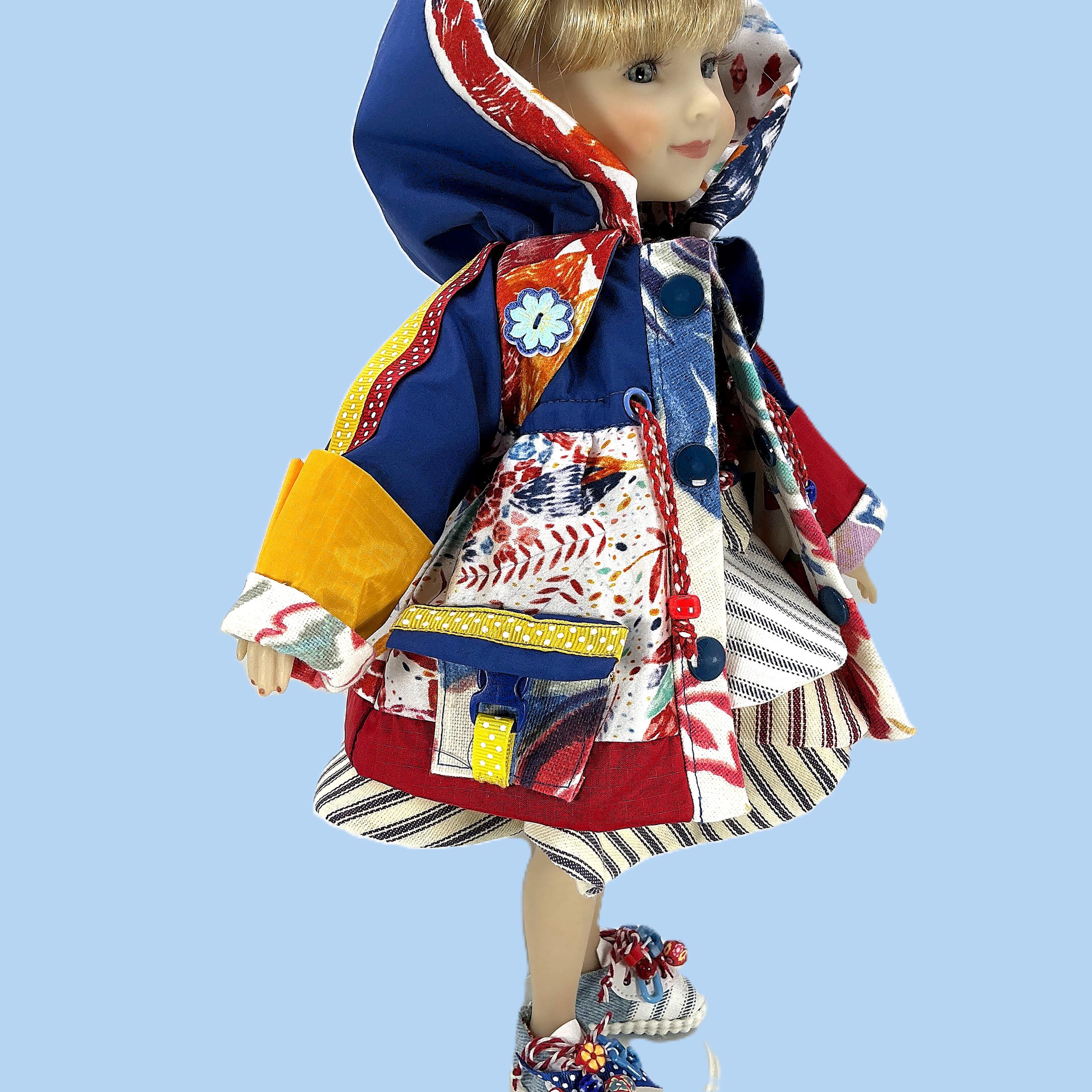 The items in your wardrobe are handmade and one of a kind. The wardrobe is intended for Collectors or gentle play. Items may have small parts like buttons or ribbons. Use with caution in households with small children or pets. For aesthetics reasons: The fabrics are not pre-washed and may shrink if laundered. Fabric glues, iron-on tapes and hand-stitching may have been used in some areas and require gentle use.