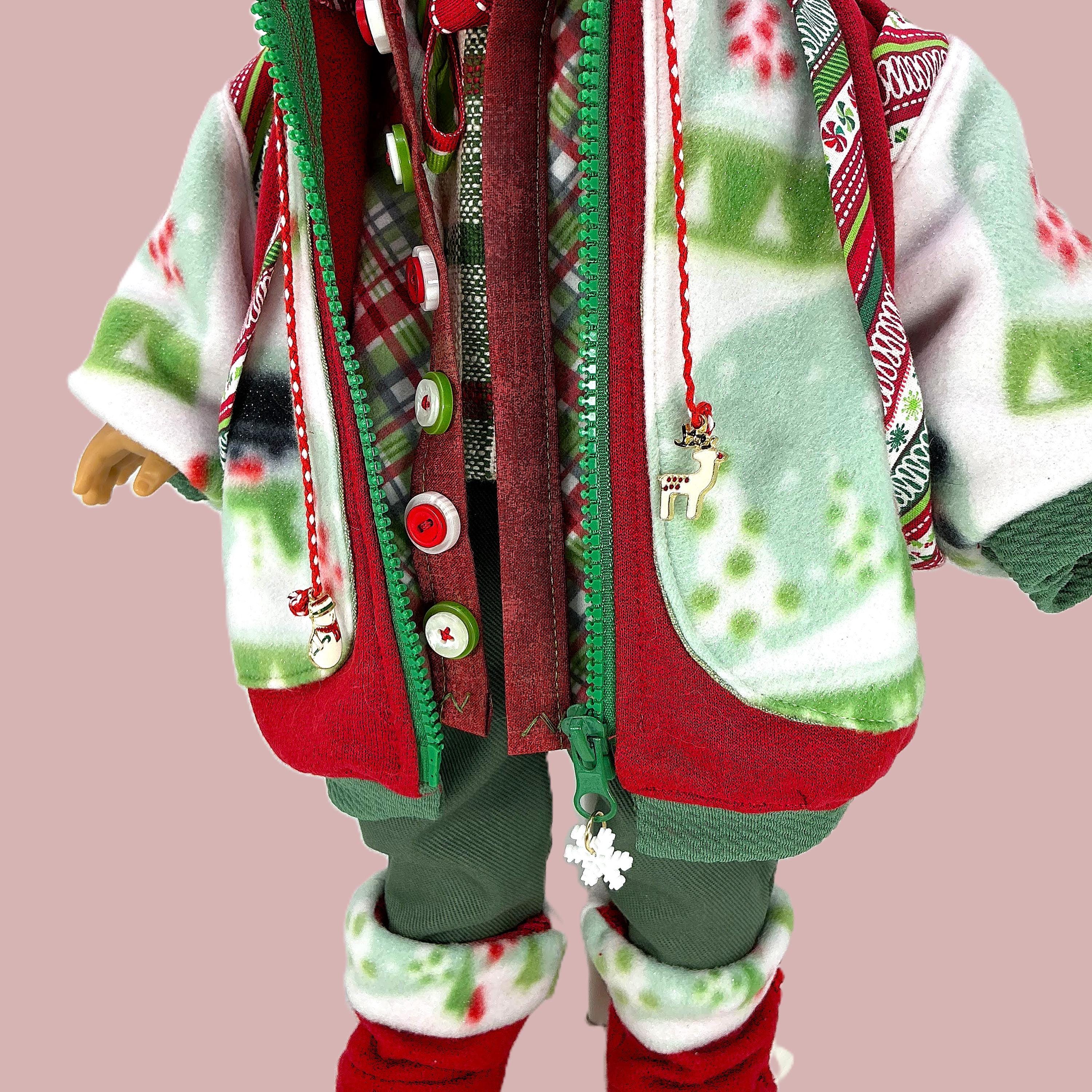 The items in your wardrobe are handmade and one of a kind. The wardrobe is intended for Collectors or gentle play. Items may have small parts like buttons or ribbons. Use with caution in households with small children or pets. For aesthetics reasons: The fabrics are not pre-washed and may shrink if laundered. Fabric glues, iron-on tapes and hand-stitching may have been used in some areas and require gentle use.