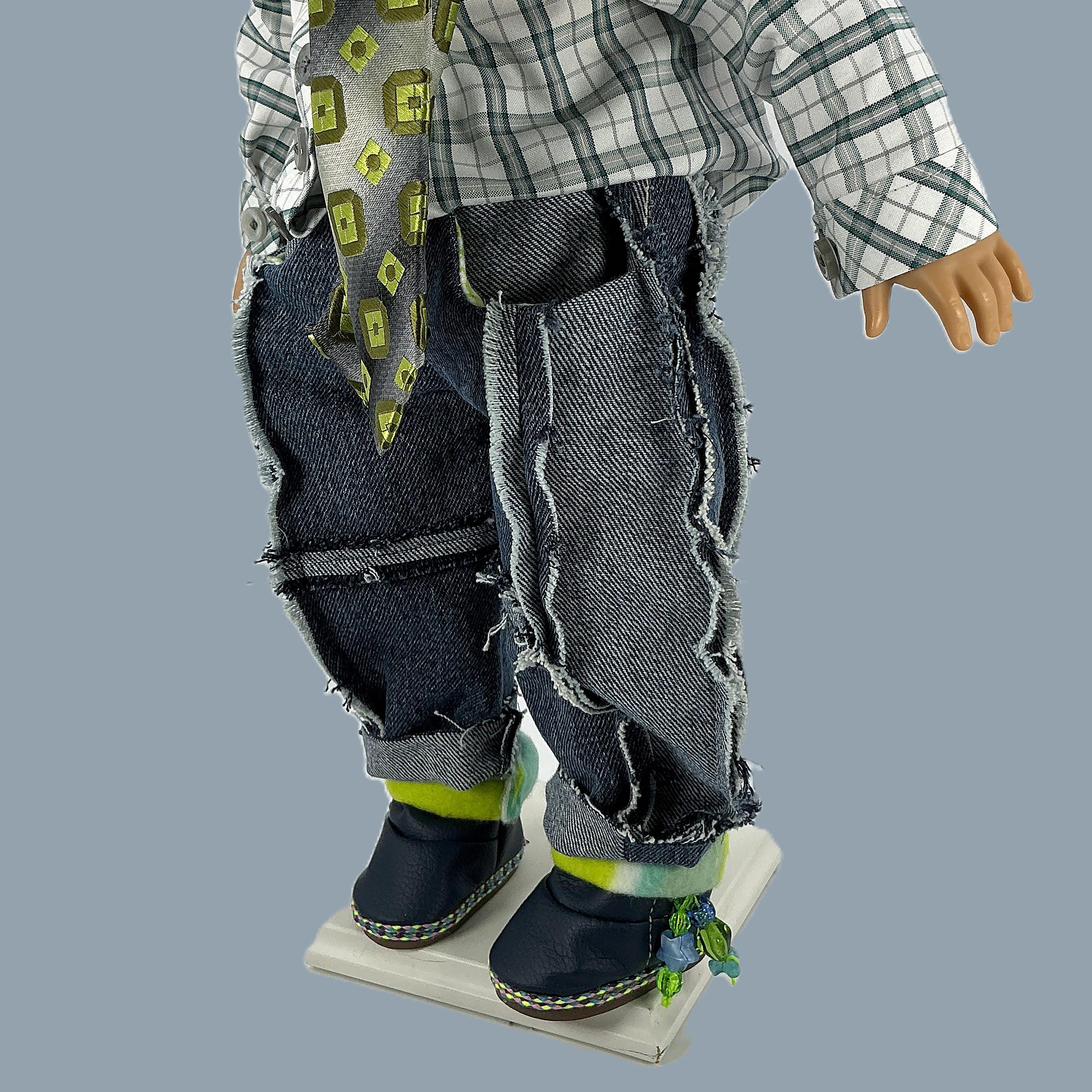 The items in your wardrobe are handmade and one of a kind. The wardrobe is intended for Collectors or gentle play. Items may have small parts like buttons or ribbons. Use with caution in households with small children or pets. For aesthetics reasons: The fabrics are not pre-washed and may shrink if laundered. Fabric glues, iron-on tapes and hand-stitching may have been used in some areas and require gentle use.